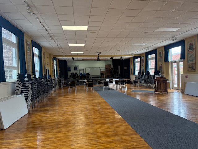 ↓受付から一番近いところにある講堂、何か簡単な集会を行ったり音楽の出し物をする際に使われたりSATや試験の指定会場となっている時はここで公式のテストが受けられたりもするそうですよ。