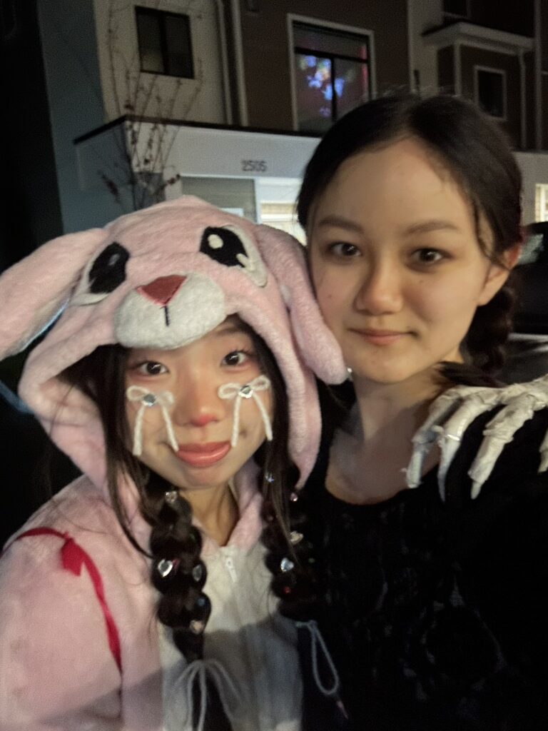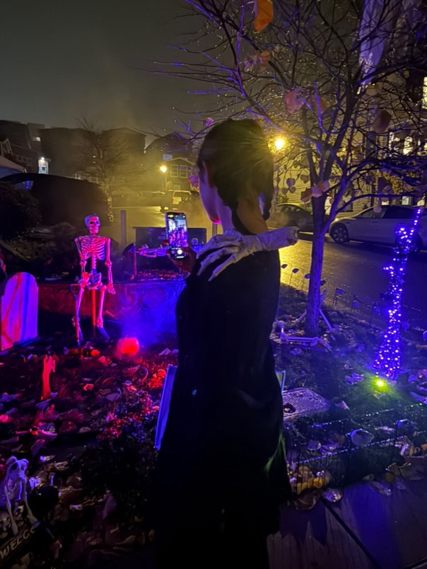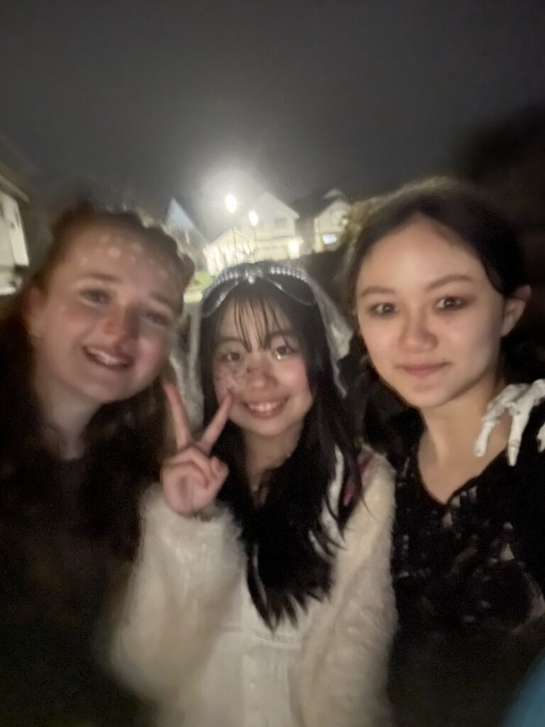 10月のハロウィンでは日本人、韓国人、ドイツ人のお友達と一緒に仮装をしてTrick or Treatをしに近所を回ったそうです!TVドラマではやったWednesdayの仮装をしたそうですが、とってもお似合い!周りの住宅地ではハロウィンの装飾も目を見張るものばかりだったそうで、北米らしいハロウィンを楽しまれたようでした!