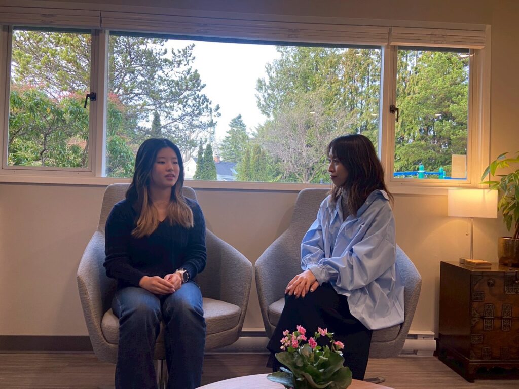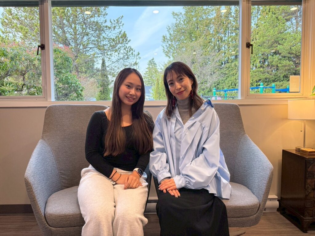 ↓お写真左はMちゃん、面談が終わりそうな頃に来てくれたのは2025年の9月からグレード10として入学したLYLのGNSルーキー、Hちゃん。日本にいる頃はオンラインでの留学面談→視察等なしでのカナダ留学となり夏の語学学校もビクトリアにある学校だったため、実はこれが実際にお会いするのは初めてでした!