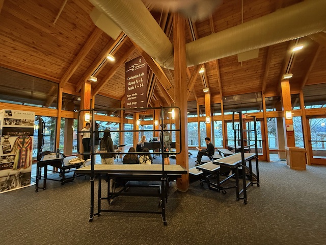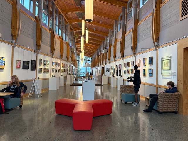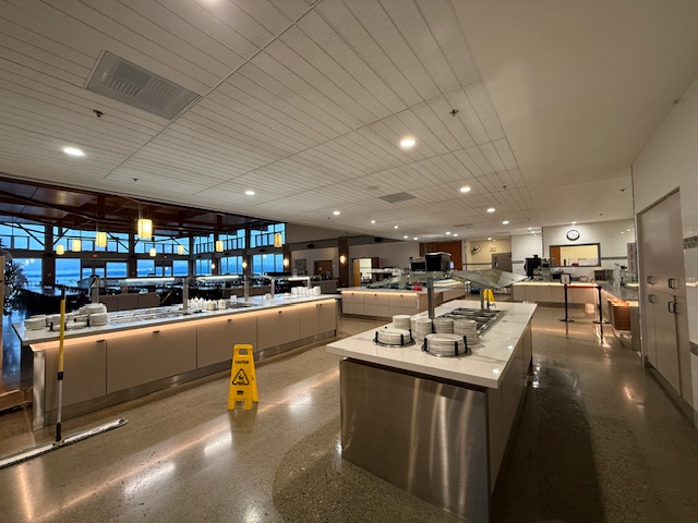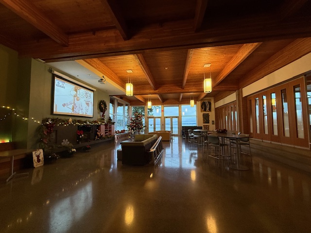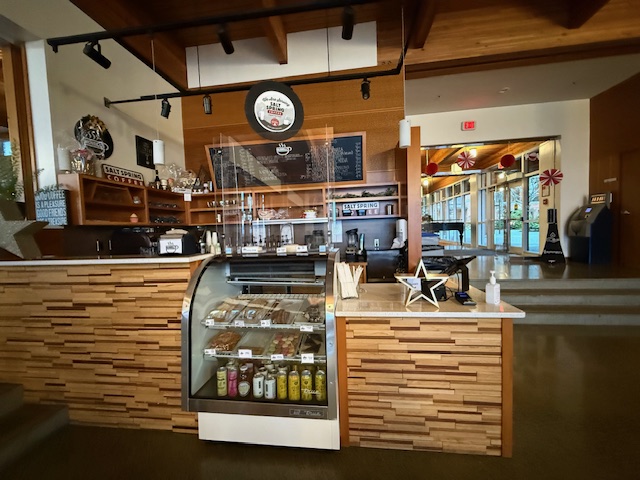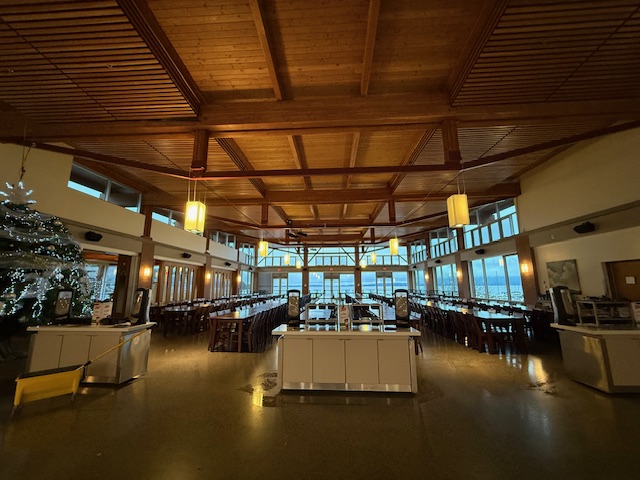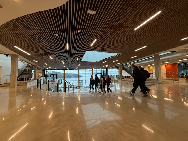↓アート専門のキャンパスビルを出て次の校舎に移ります、ここにはボーディングスクールの生徒さんが普段3食食事をとるダイニングがあり、その隣にはブレントウッドカレッジスクール(BRENTWOOD COLLEGE SCHOOL)のカフェがあって夕方まであいているのでここでお友達とお茶をしたり、みんなでスポーツ観戦をしたりなどワイワイと過ごすことも多いそうです。