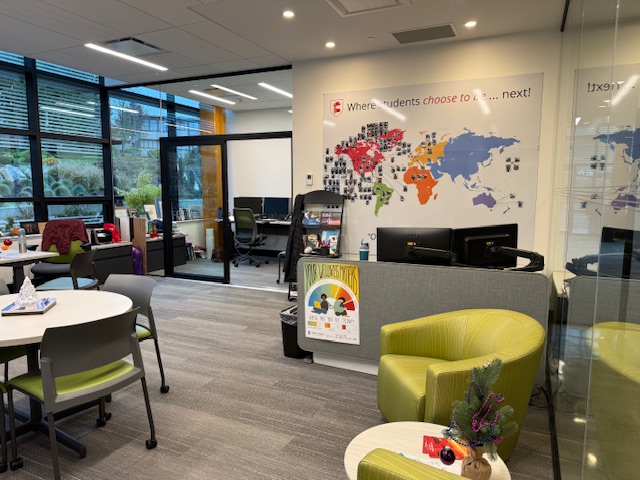 ↓メインキャンパスの中に大学進学向けのガイダンスルームもあり、ここで進路だったり受講する科目などの相談をすることができます。ブレントウッドカレッジスクール(BRENTWOOD COLLEGE SCHOOL)の進学実績はカナダでもトップレベルとなっておりカナダの名門大学、アメリカの名門大学だけではなくイギリス、ヨーロッパ、オーストラリア、日本も慶応や東京大学を目指す子も多いという進学校となっています。