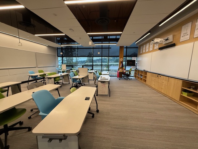 今回はあいにくの曇り空で、晴天時の美しい海の景色を十分にお伝えできなかったのが少し残念でしたがそれでも海と空に囲まれた落ち着いた環境、そしてキャンパス全体に流れる穏やかな空気感はしっかりと感じることができました。Mちゃんも学校の雰囲気が本当に好きで強にも集中できると大満足とのことでした!