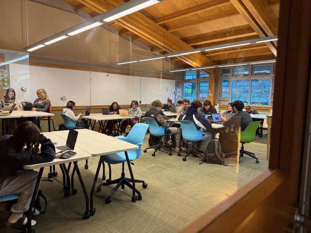 ↓この日は授業が午前までだったので午後はアートや音楽活動など好きなアート系活動に時間を使うスケジュールとなっており、皆さん制服ではなく北米らしいスウェットなどで学校生活を送っていらっしゃいました。