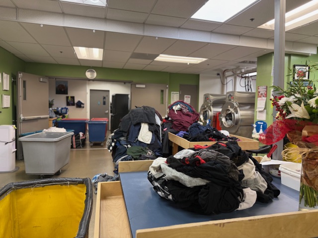 ↓途中で通ったランドリールーム、服を預けると洗濯をしてまた生徒さんの手もとに戻ってくるシステムです
