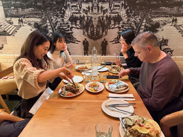 ↓その後はみんなで弊社留学エージェントオフィス近くのギリシャ料理にみんなで行って、引き続き交流を深めました。オフィスで話すときとは違って、やはりお互いの過去だったり仕事に対する思い、心に残っている生徒さんの思い出話なども出来てリラックスした中でより深い話も出来て本当に良い時間でした。