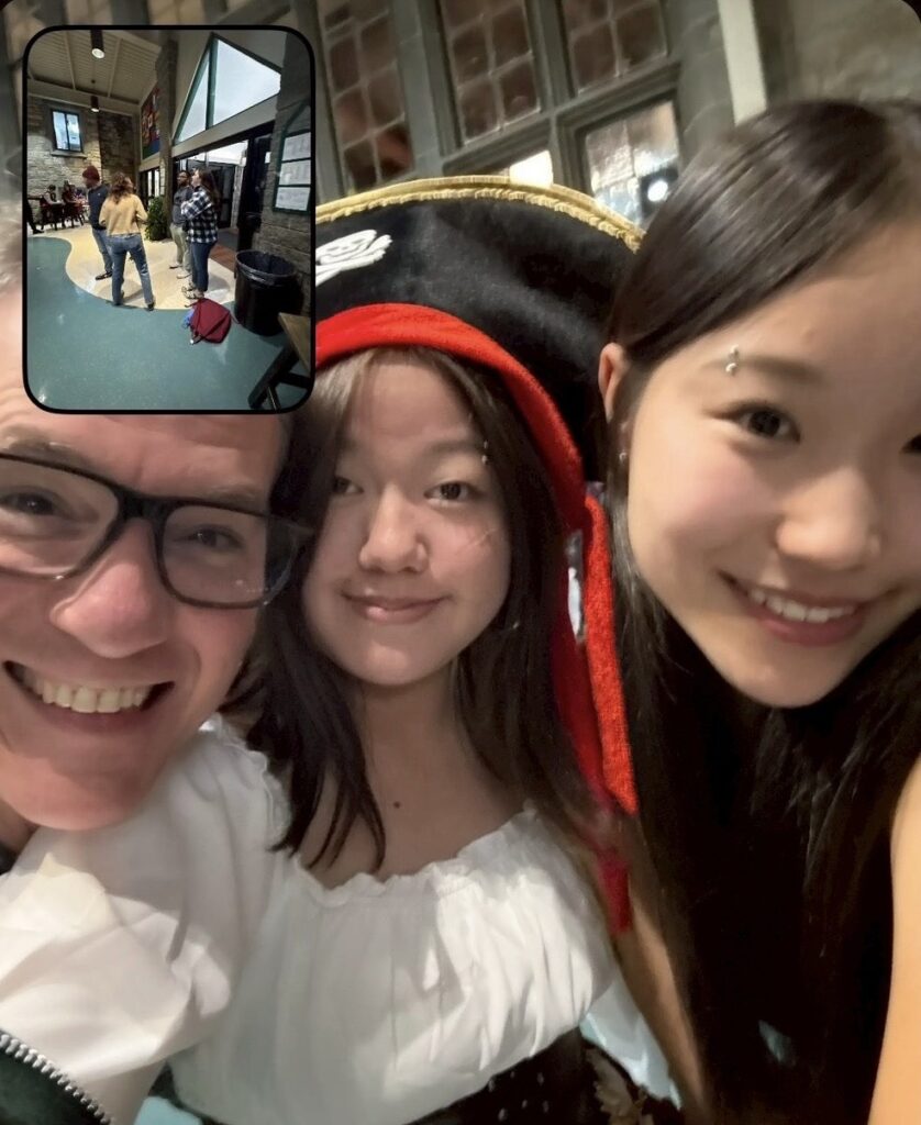 寮生活についても、一人部屋ということもあり特に問題なく、快適に過ごされている様子です。最近は学校全体がハロウィン仕様になっており、仮装にも参加されたとのことでした。Yさんは海賊の仮装をされたそうで、お写真からも楽しんでいる様子が伝わってきました。放課後には学校主催のお化け屋敷やハロウィンパーティにも参加し、お化け屋敷は学校の地下通路などを活用した本格的なもので、怖さもありつつとても楽しく、3回も参加されたとのことでした。