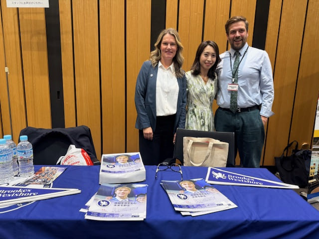 ↓留学ブースの準備をしていると顔見知りの留学業界の担当者さんにたくさんお会いします、まずは仲良しのカナダビクトリアにある名門私立校、IB校でも有名なBROOKES WESTSHORE(ブルークスウェストショア)とGNSの担当者さん。この二人に出会ってから10年ほどですが、毎年3-5名の生徒さんをそれぞれの学校に送り充実したボーディングスクールでの留学が実現し本当に嬉しく思っています。